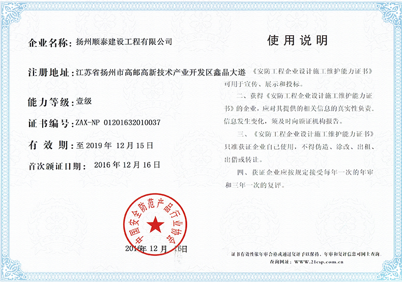 安防工程企業(yè)設(shè)計(jì)施工證書-順泰交通